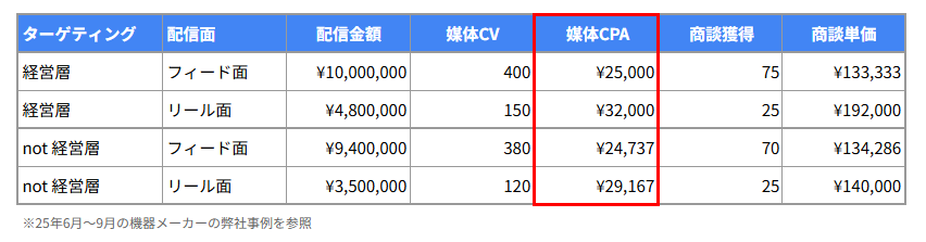 媒体CPAはもちろん、その後の商談効率で見ても他媒体と遜色なく、経営層を含むターゲット層へ効率的にアプローチできていました。
